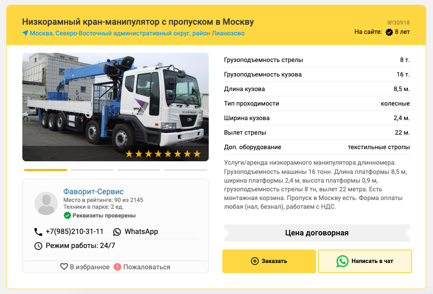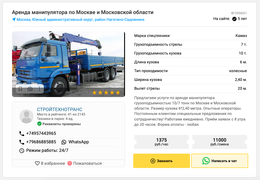 - Размещение рекламы услуг по аренде спецтехники и грузоперевозкам